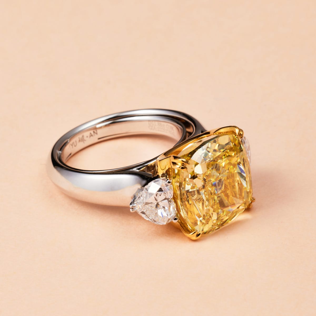 Rectangular-shaped emerald of 9.38 carats, decorated with diamonds, gold, ring size 7. On April 3rd, 2023, this 9.38-carat emerald ring was successfully auctioned at Poly Hong Kong Auction House.